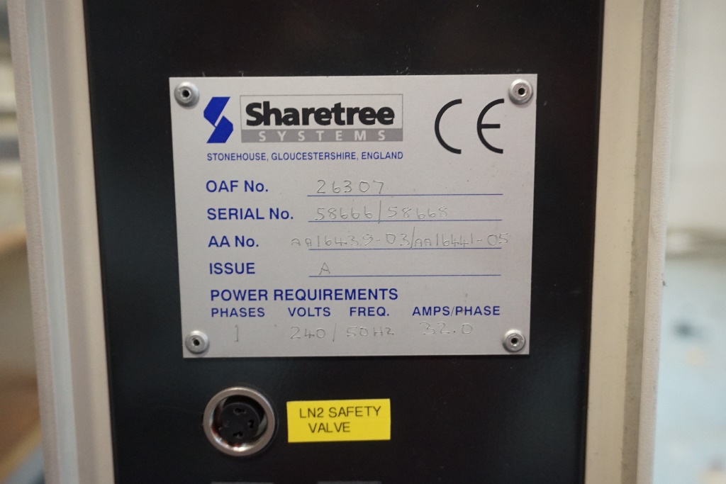 Sharetree RM2201 Thermal Forcing Unit Environmental Chamber of Non-Magnetic Construction on 45o Inclined Stand with Liquid Nitrogen Cooling, 200oc/-20oc, 3oc Max Ramp Rate, Internal Dimensions Approx. 420mm Wide X 100mm Deep X 2200mm Long, External Dimensions Approx. 620mm Wide X 450mm Deep X 3000mm Long (Excl Stand), OAF No. 26307, S/No. 55666/58668