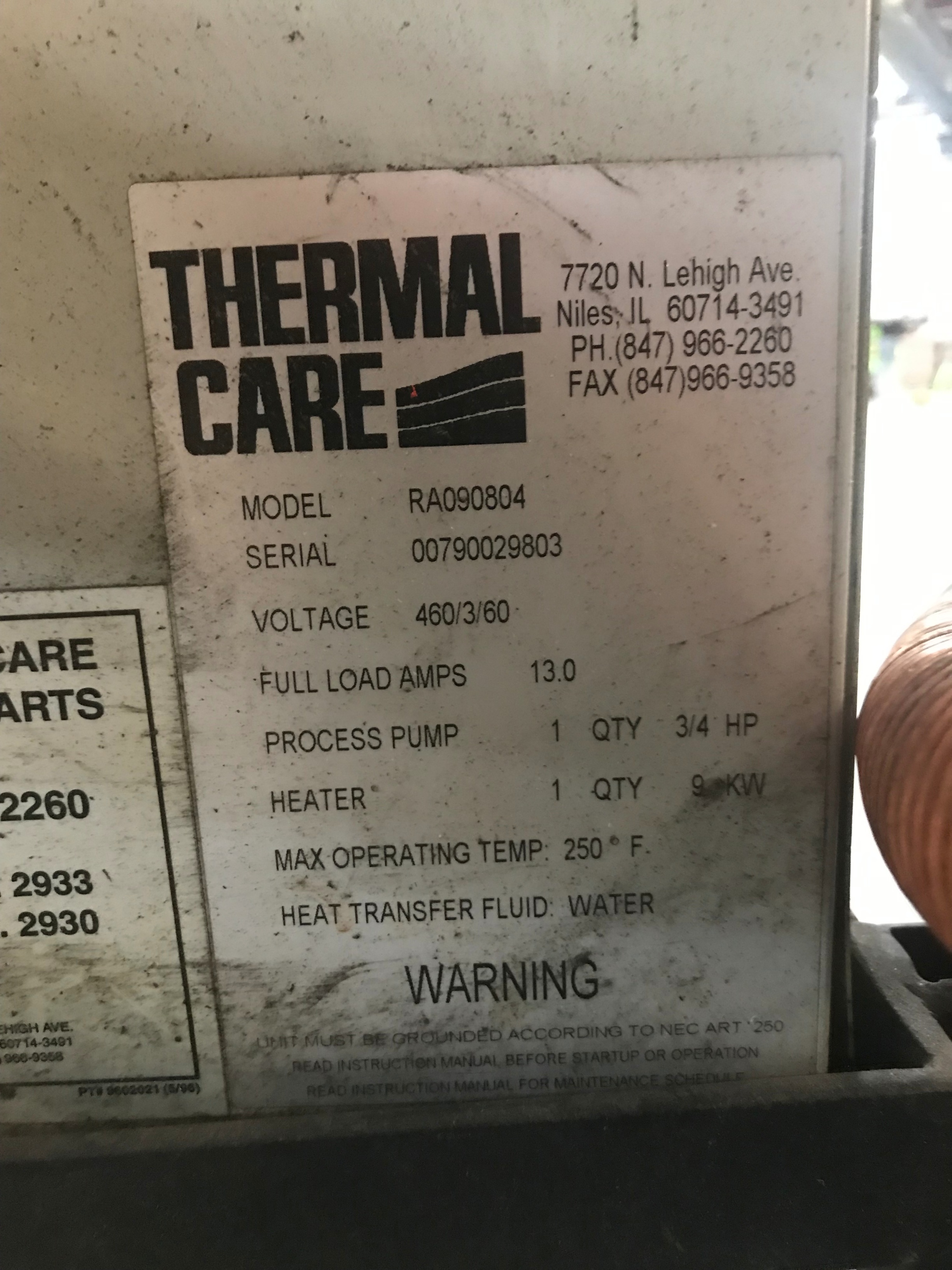 THERMAL CARE AQUATHERM RA090804 Thermolater, s/n 00790029803