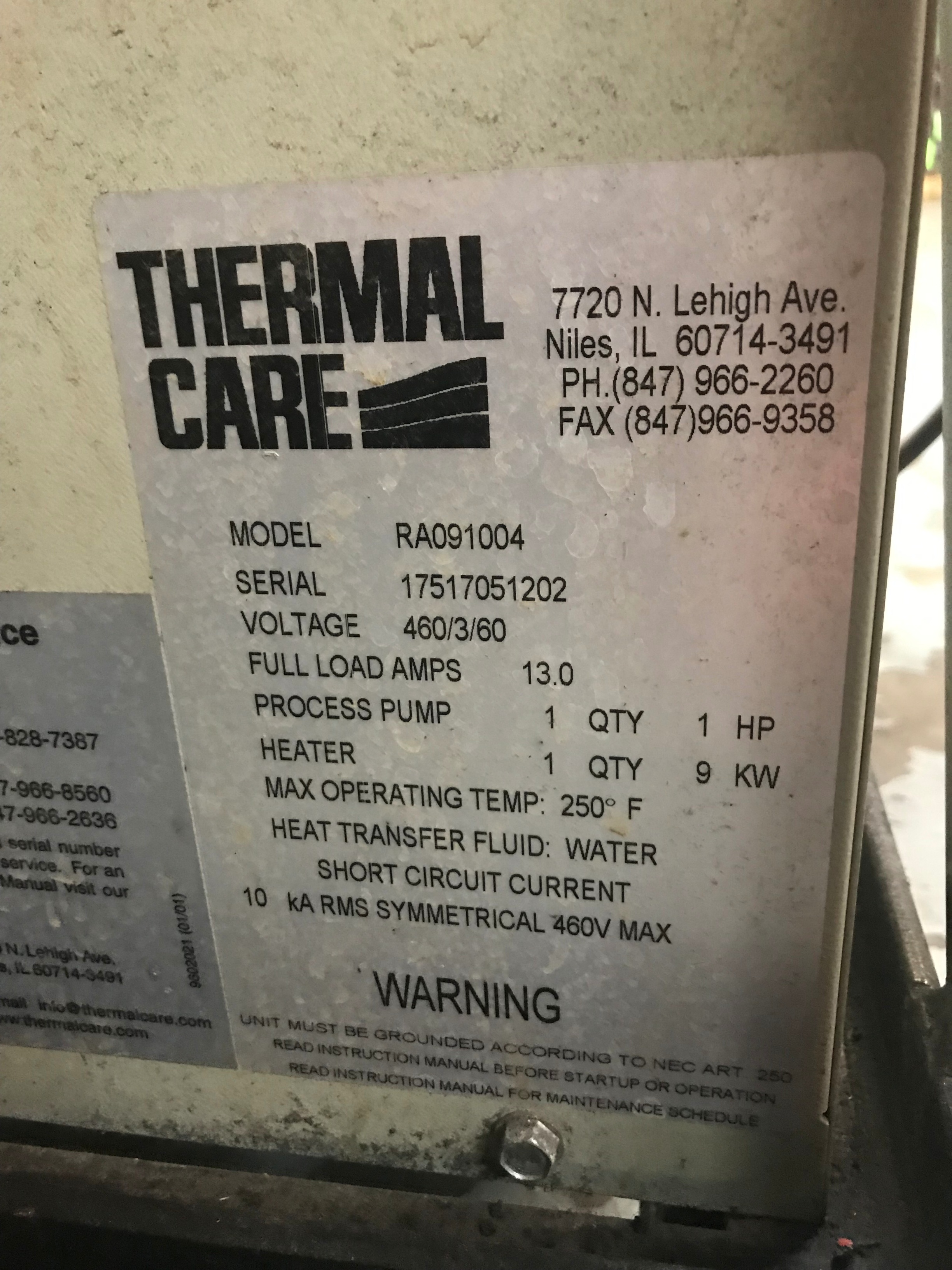 THERMAL CARE AQUATHERM RA091004 Thermolater, s/n 17517051202