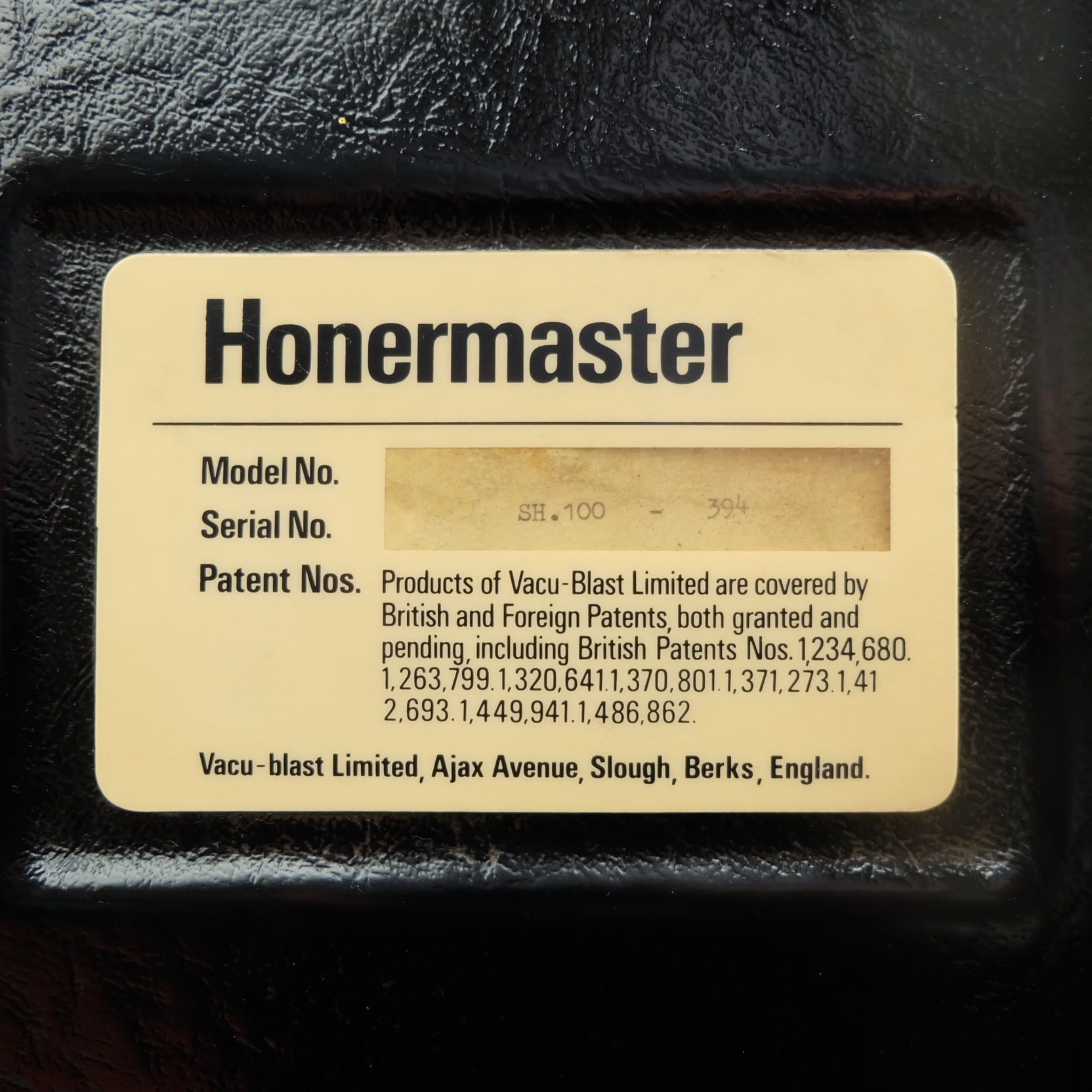 Lot 60: Vacublast Honemaster Bead Blasting Machine