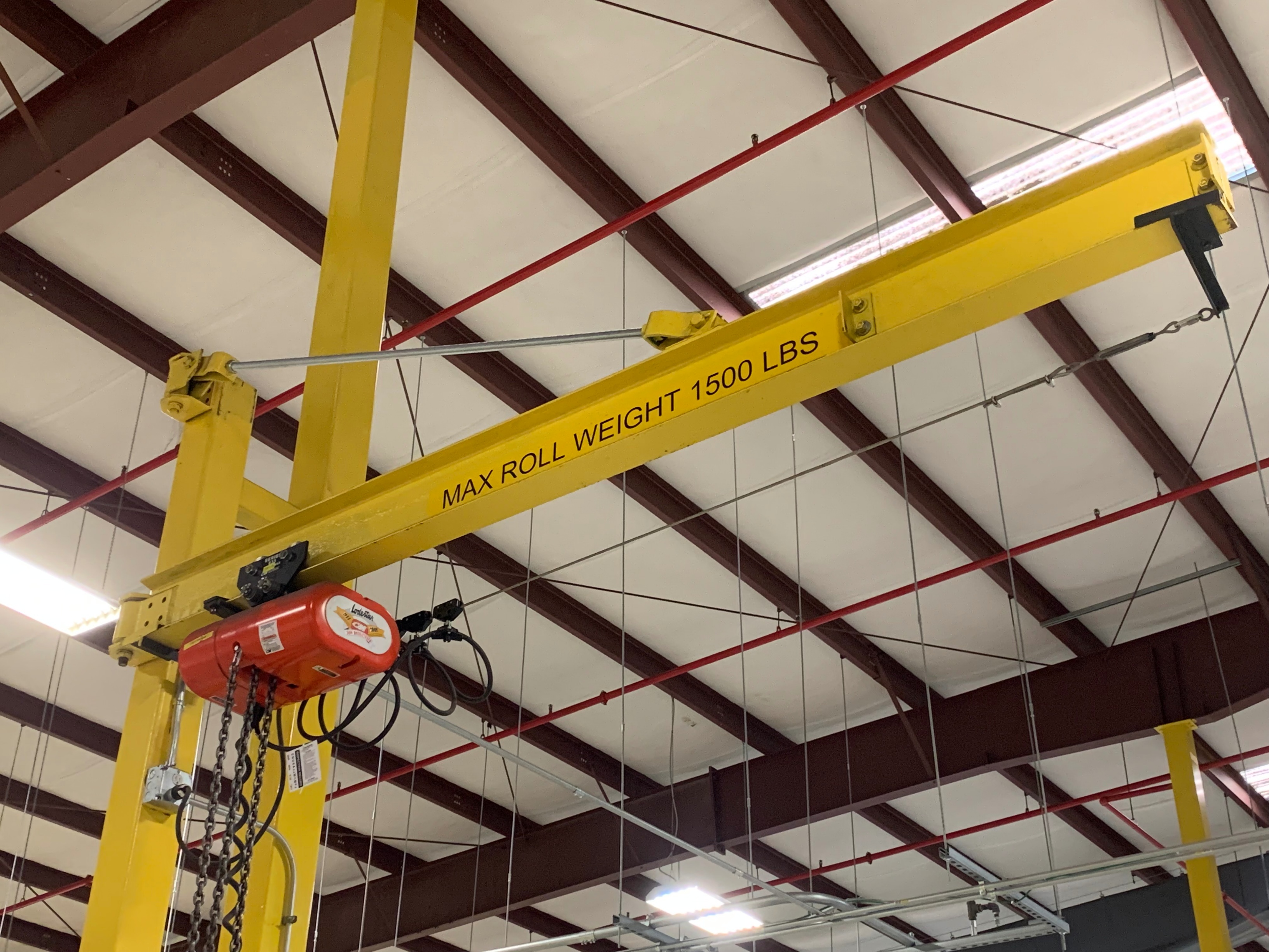 Wall Mount Jib Crane w/ Tilt-Lock LC-6 Roll Handler, s/n 11373. and CM Loadstar Hoist