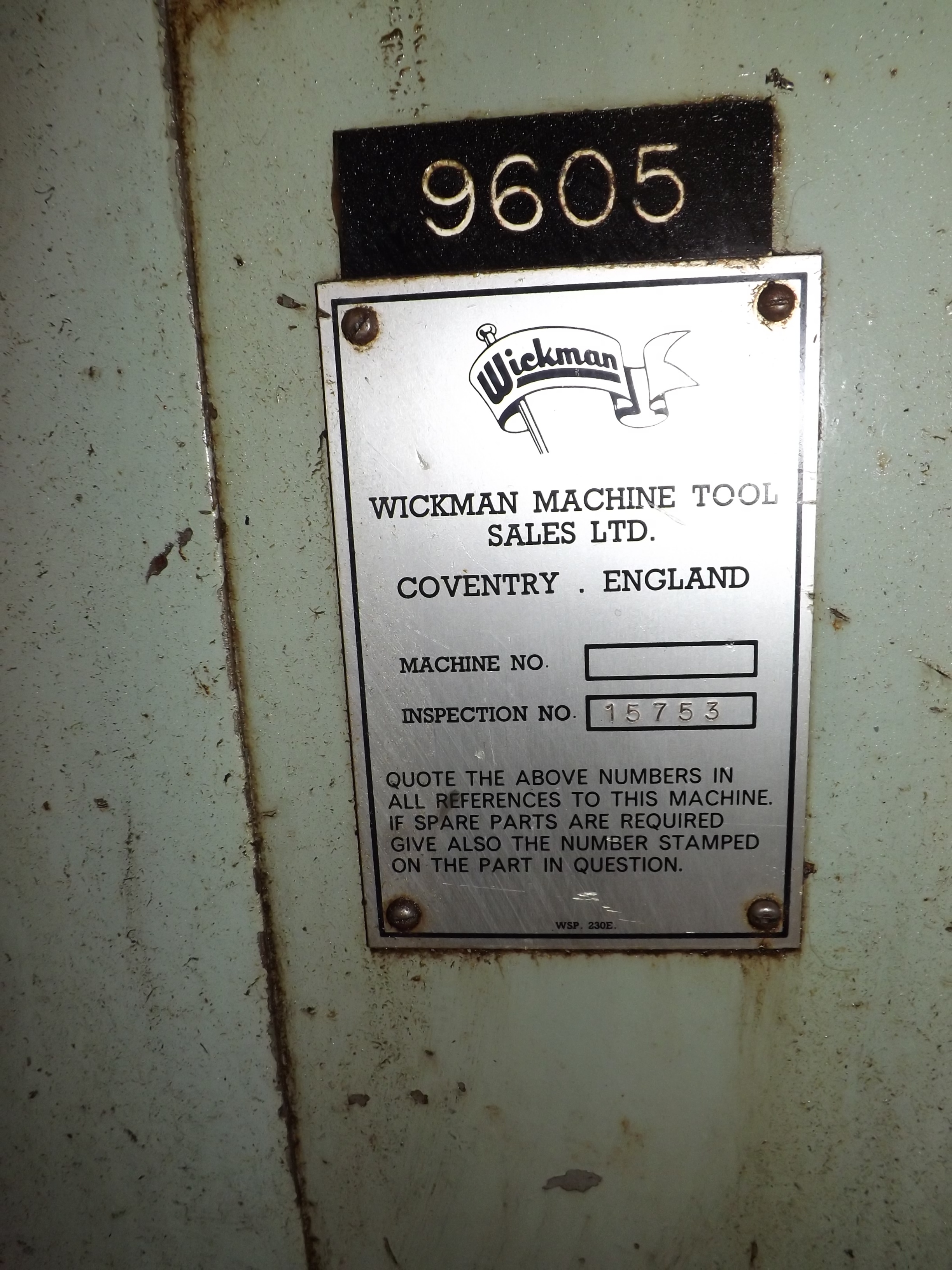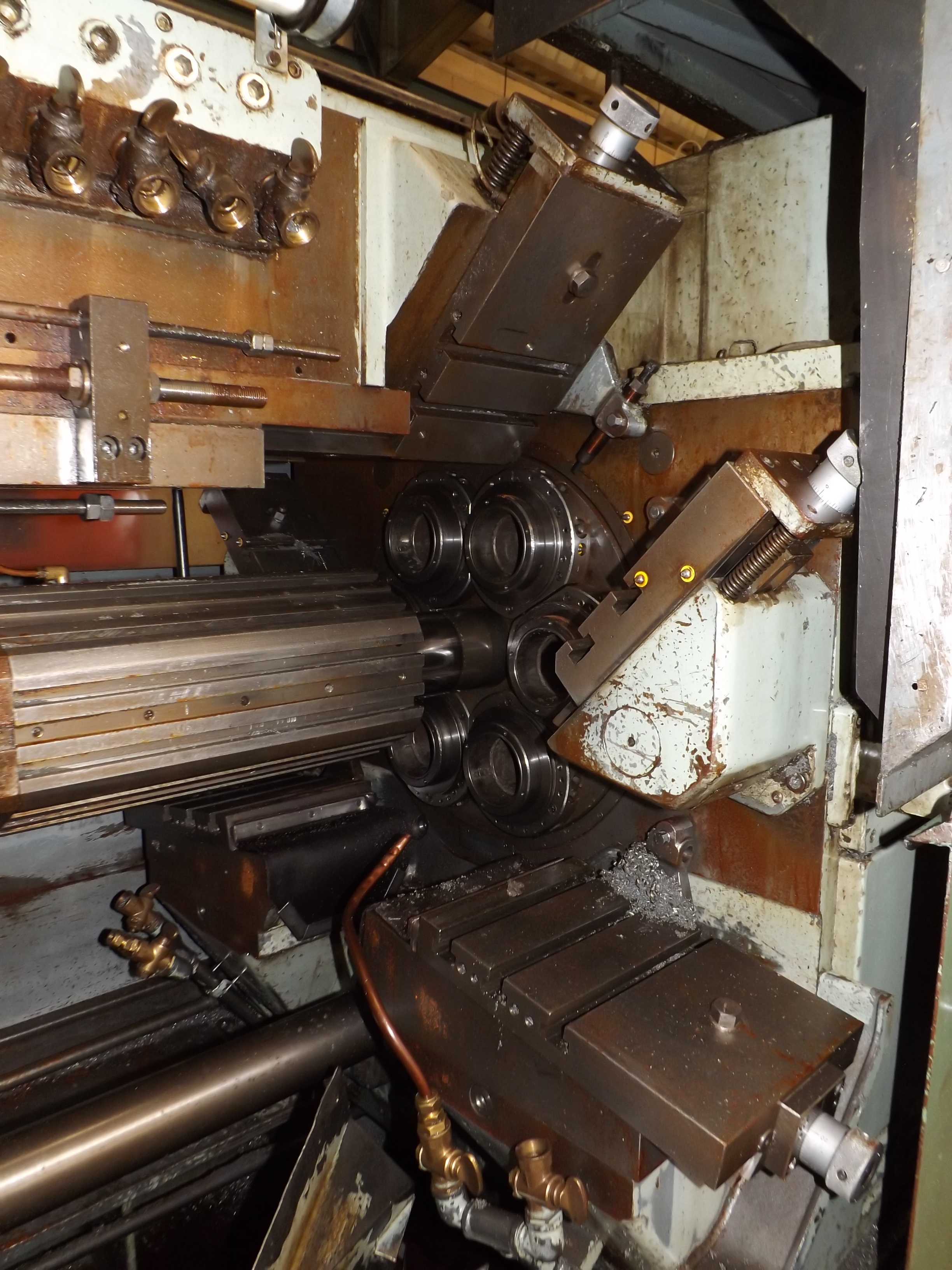 Wickman Multi-spindle (6) Lathe 2 1/4" (57mm) Capacity 6 spindle Automatic Lathe ( Electric Clutch), Thread Chasing Drive in Position 4, Standard Bar Feed & Screw Type Swarf Conveyor. S/No. 15753