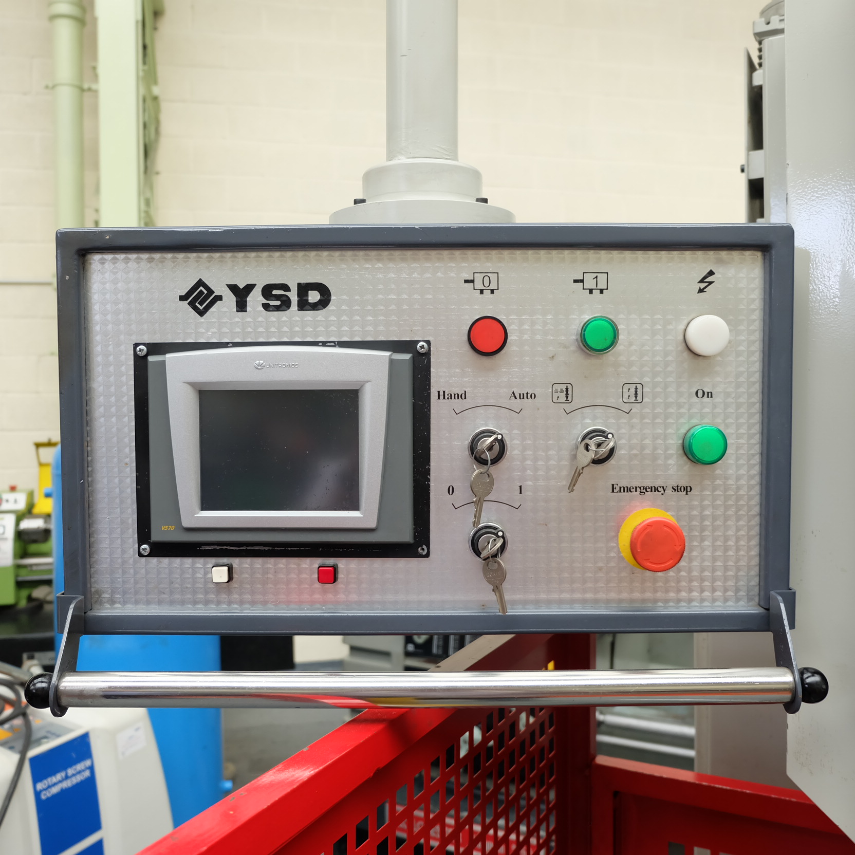 YSD Type PPTK40/12.5 Downstroke Hydraulic Press Brake, Bending Length 1250mm, RAM Power 40 Ton, Max Stroke 100mm, Closing Speed 100mm/s, working Speed 10mm/s, Distance between Frames 1040mm, Unitronics V570 Back Gauge Control, STS-2000 Light Guards (2004)