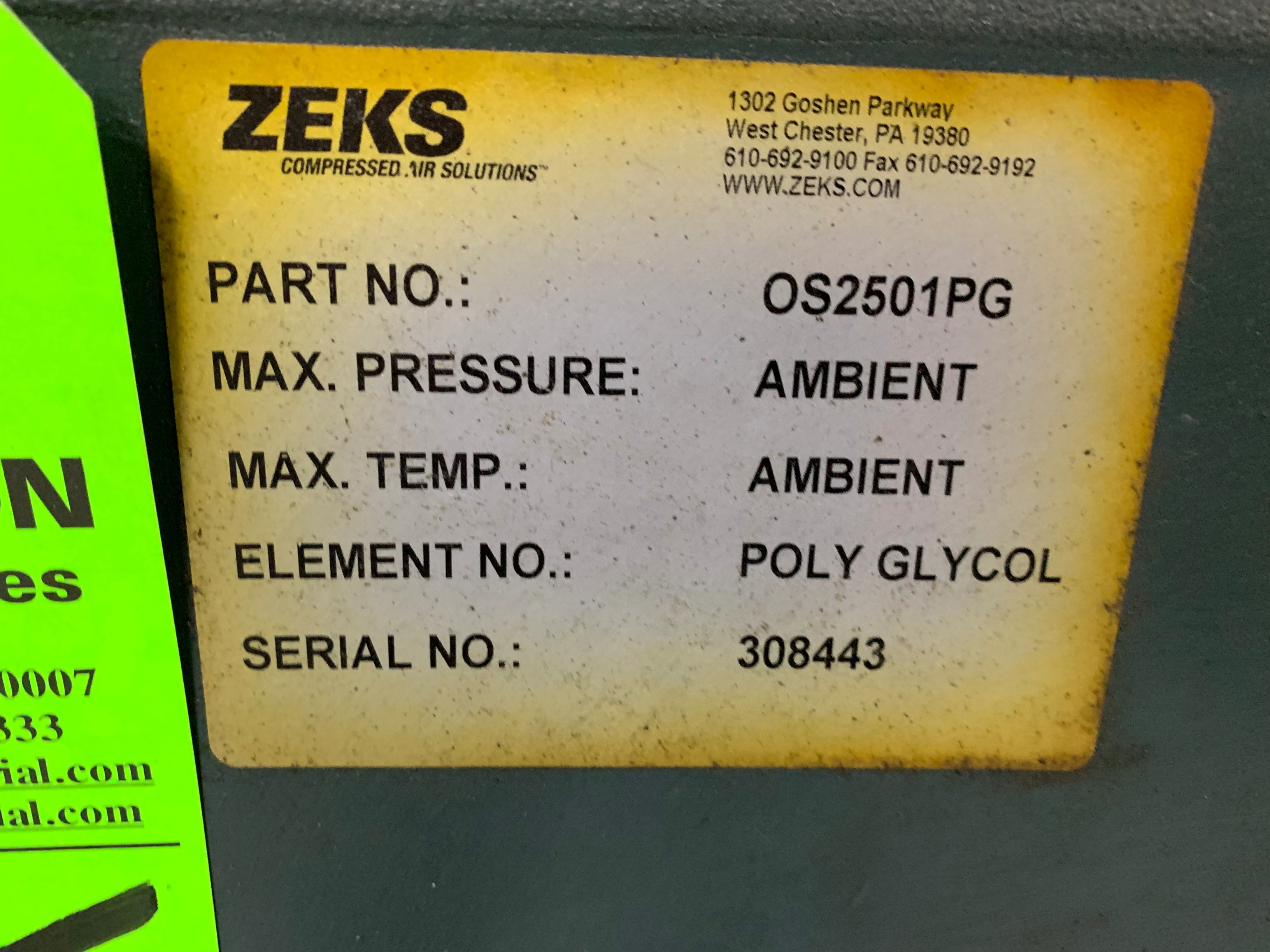 ZEKS Puro Grand Extender Oil/Water Separator, s/n 308443