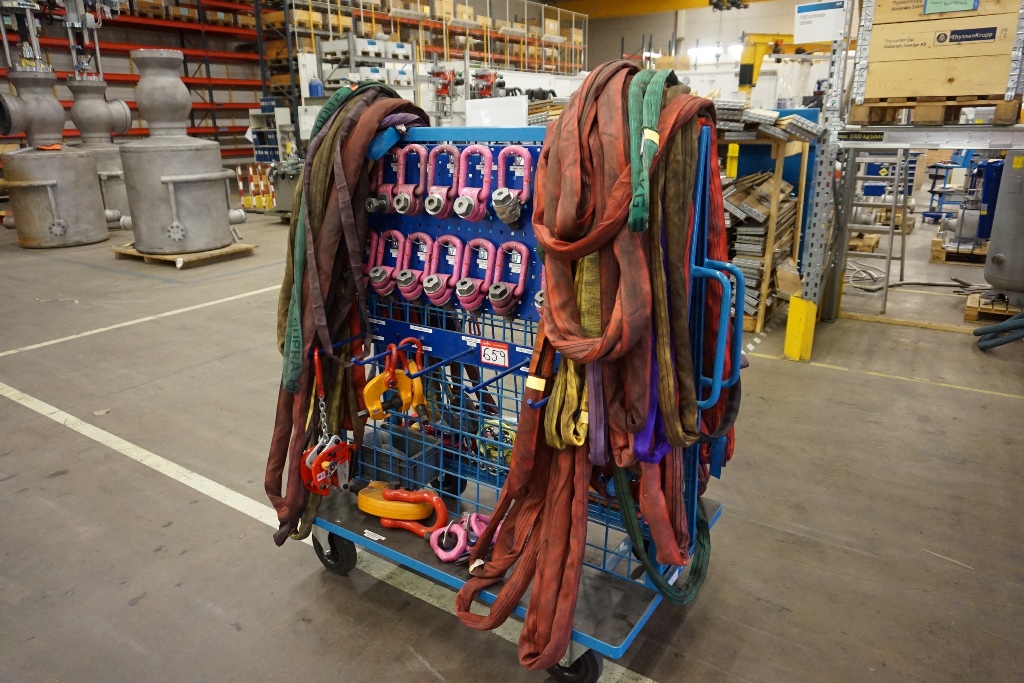 Lote 659: Mobile Trolley with Qty of Lifting Equipment